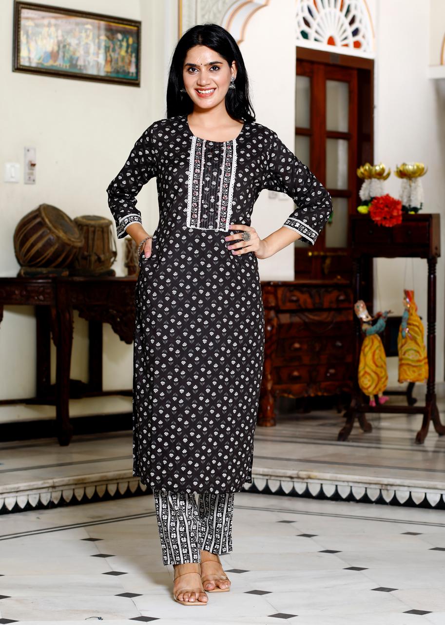Shop the latest Floral Print Cotton Suit Set at Hk Vastra. Premium quality 3-piece ethnic wear with chevron dupatta. Perfect for festive and casual looks. Buy now