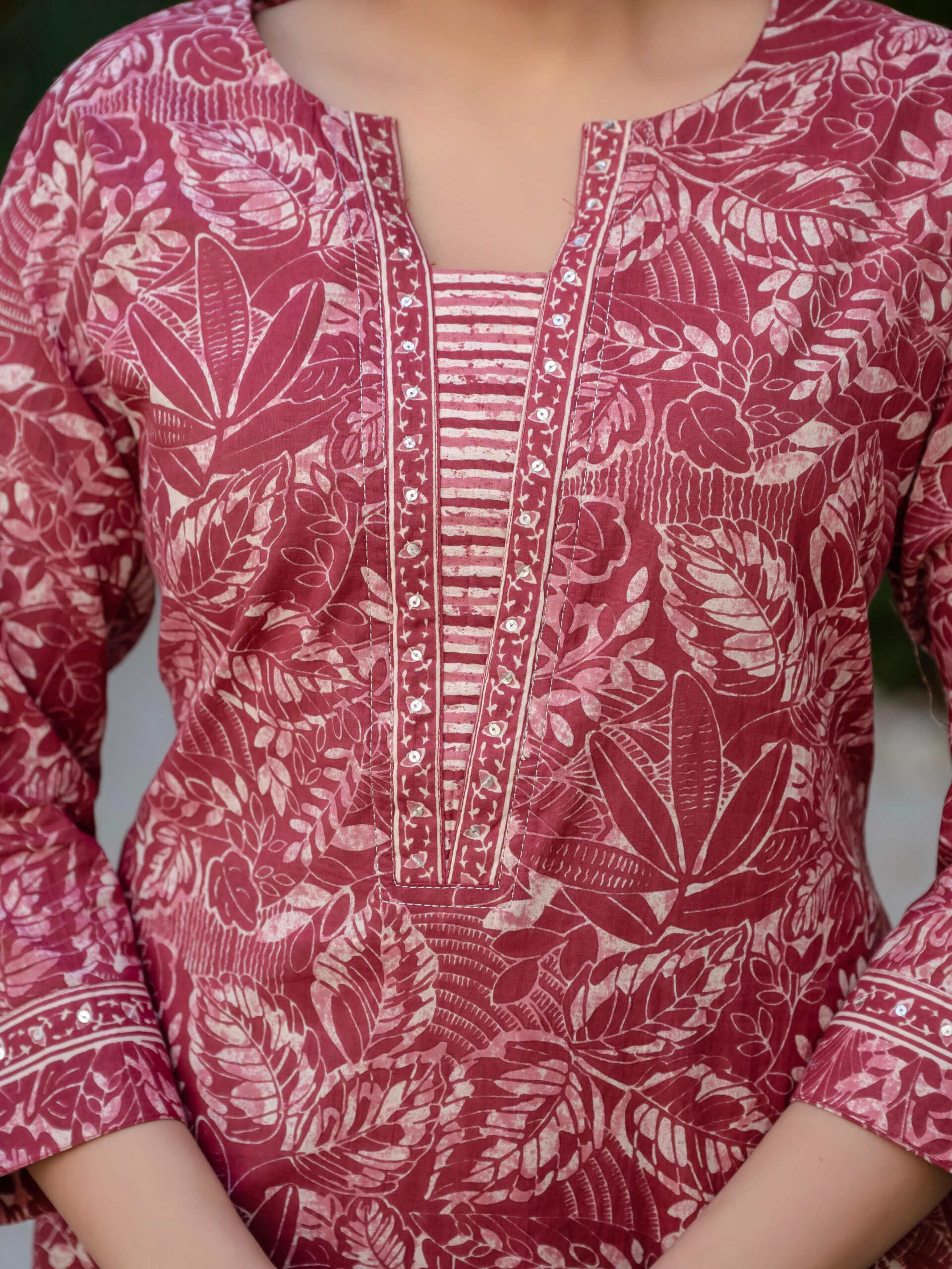 Elegant Maroon Floral Print Kurta Pant & Dupatta set ? Premium Quality