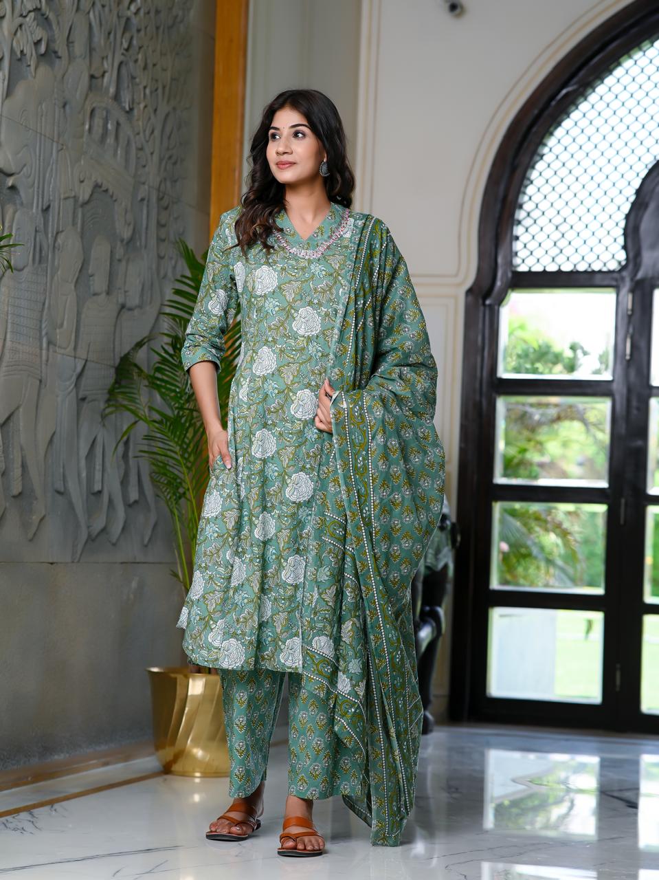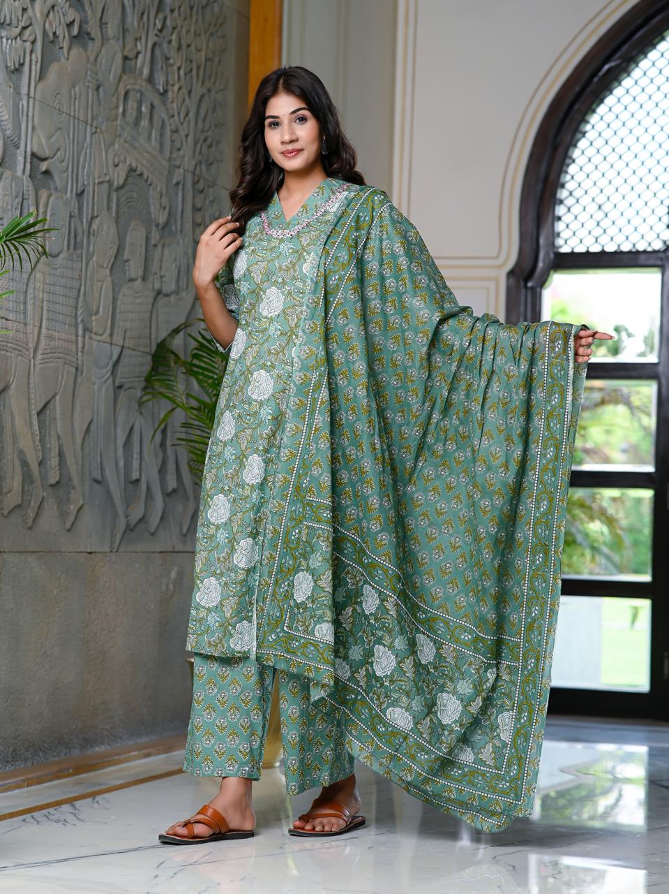 Embrace comfort and elegance with this Cotton Kurta Palzo and Dupatta Set, perfect for casual outings,