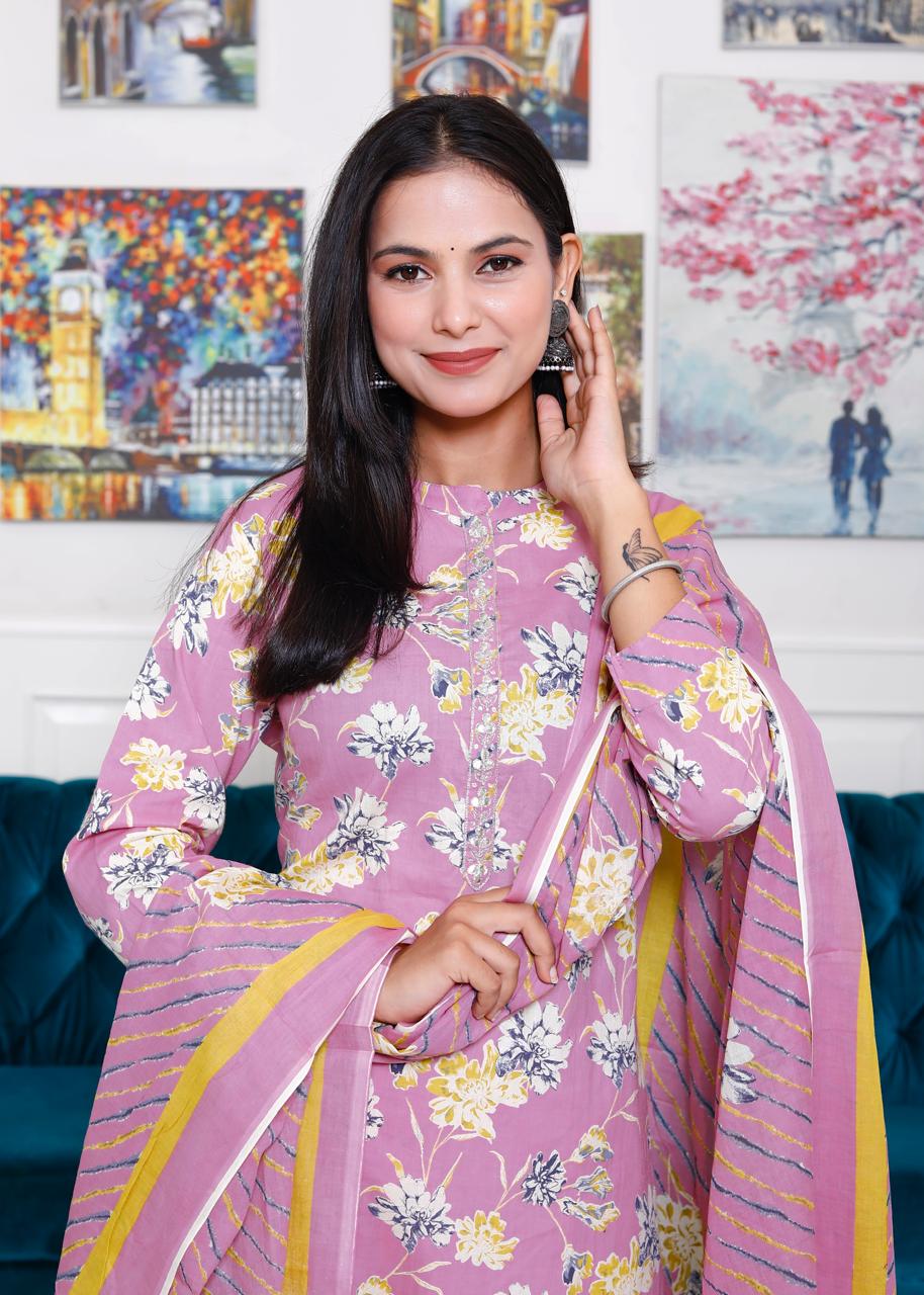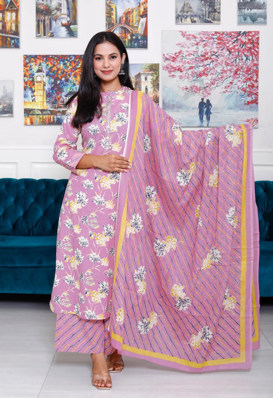 Embrace comfort and elegance with this Cotton Kurta Palzo and Dupatta Set, perfect for casual outings,